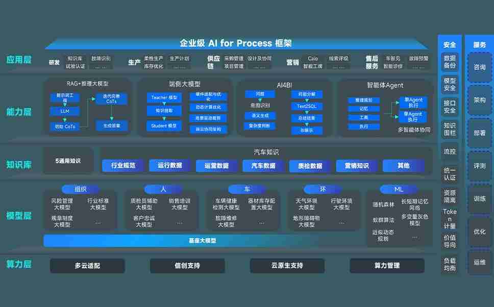 尊龙凯时问学智车解决方案是一套基于AI技术的汽车行业智能化系统,,,,覆盖从底层算力到顶层AI应用的全栈方案。。。方案由算力层、、模型层和应用层组成:算力层,,方案支持多种一体机配置,,具备云端灵活部署、、、、多云适配以及动态优化计算资源的能力;模型层,,,,尊龙凯时问学平台版提供了企业级AI应用一站式构建与管理平台,,,支持基于后训练强化技术的汽车企业专属模型的训练、、、、评测和运营;应用层,,,尊龙凯时问学DeepSeek版提供包括超级员工、、、智能招采、、、、智能营销、、、智能客服、、AI for BI等一系列解决方案,,,,可助力汽车行业实现数字化转型,,,,让管理更智能、、、、响应更敏捷。。